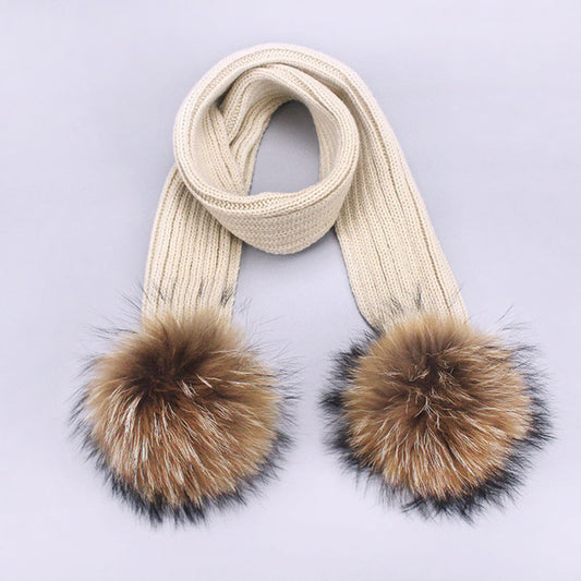 Children's Double Woolen Hats With Woolen Balls Scarf Set